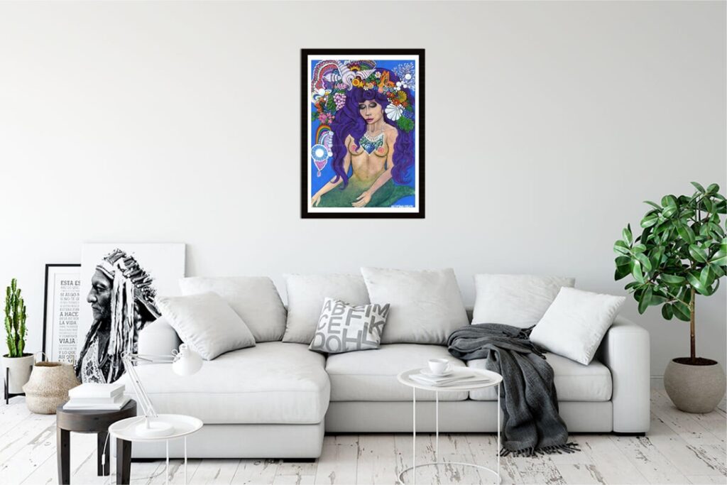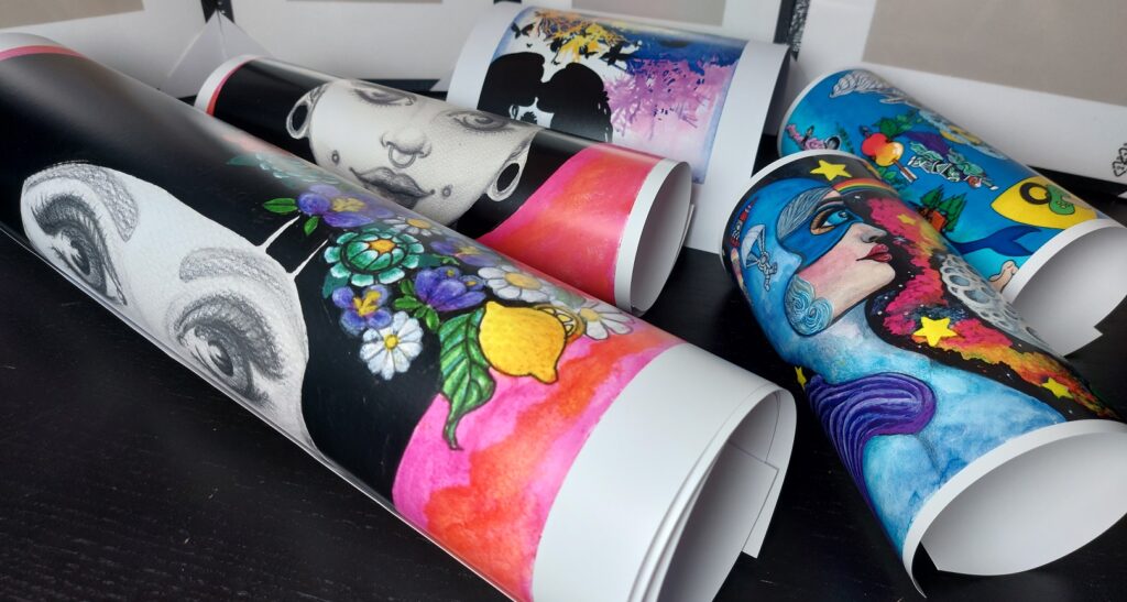 Kunsten du kan købe her, på LADYKAOS.DK er farverig og fyldt med magi. Den er fyldt med luftballoner, enhjørninger, robotter, zombier, regnbuer og mennesker der er lidt skævt for midten. Kunsten her har hverken alders eller køns anbefaling. Det hele er skabt i passion, nysgerrighed, inderlighed, med skævt sind og endeløse indre eventyr.